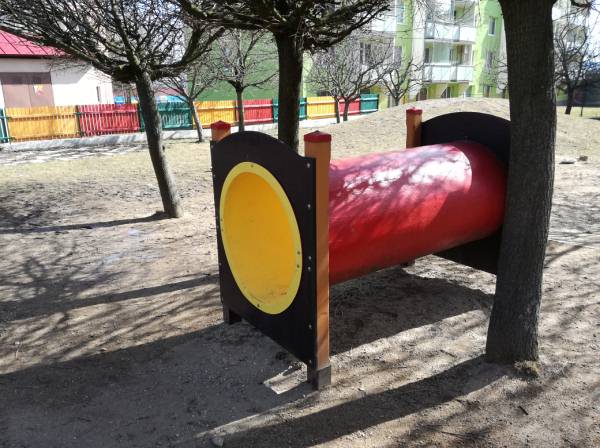 Dětem je k dispozici velká školní zahrada, vybavená dřevěnými průlezkami. Často využíváme i dalších možností, které nám nabízí příroda v okolí MŠ. V případě nepříznivého počasí se mohou děti „dokonale vyřádit“ v blízké tělocvičně ZŠ.