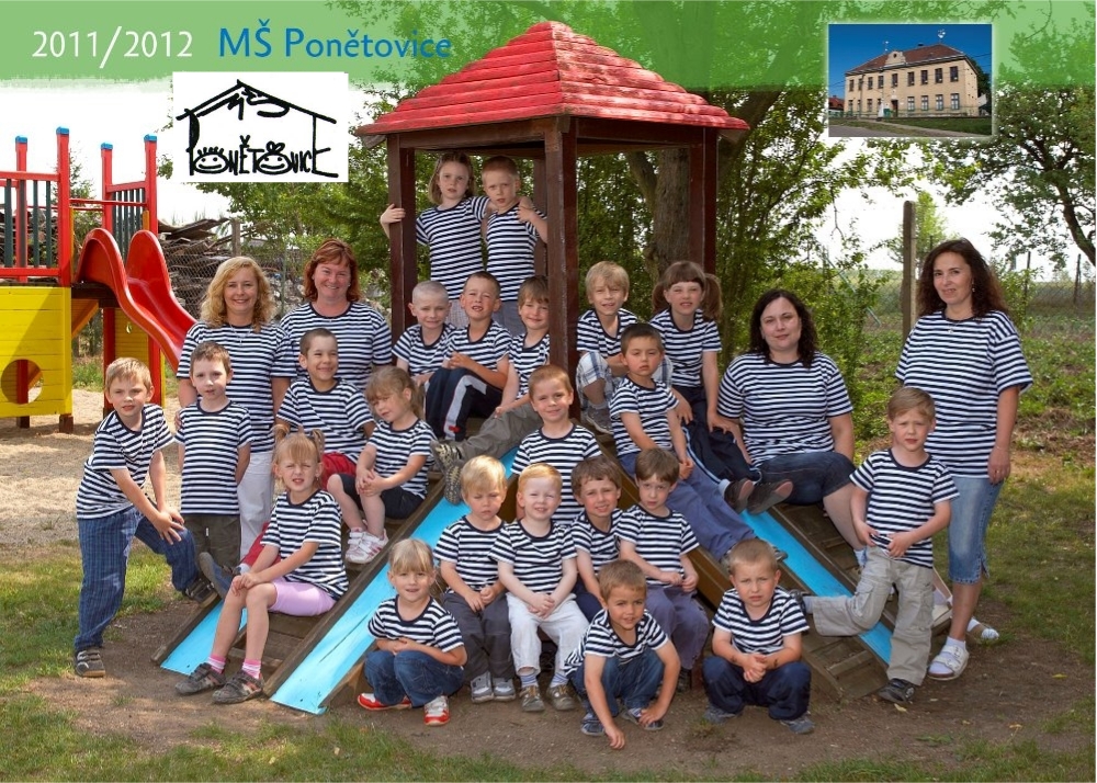 Vítejte v mateřské škole Ponětovice. Jsme dvoutřídní MŠ s kapacitou 28 dětí a celodenním provozem, máme vlastní školní kuchyň a prostornou samostatnou ložnici. Kromě místních dětí k nám chodí i děti z blízkých Šlapanic i okolních obcí. O děti a chod školy se stará p. ředitelka, dvě p. učitelky, p. asistentka, p. kuchařka, p. školnice a vedoucí stravování. Pedagogické pracovnice jsou plně kvalifikované, Paní ředitelka: SPgŠ a VŠ v oboru, praxe přes 40 let. Paní učitelky SPgŠ, Díky zapojení do projektu spolufinancovaném Evropskou unií jsem získali prostředky na další pracovnici - školní asistent. Pracujeme podle Rámcového vzdělávacího programu pro předškolní vzdělávání.